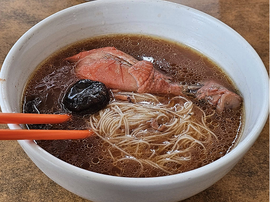 This eatery is praised for its Red Wine Chicken Soup Mee Sua, featuring smooth noodles in a savory, slightly alcoholic red broth with tender chicken drumsticks.